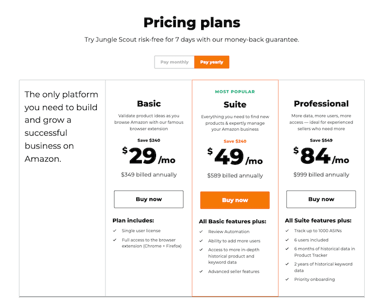 If you are interested in using Jungle Scout for your Amazon business, this is the cost for our suite of tools.