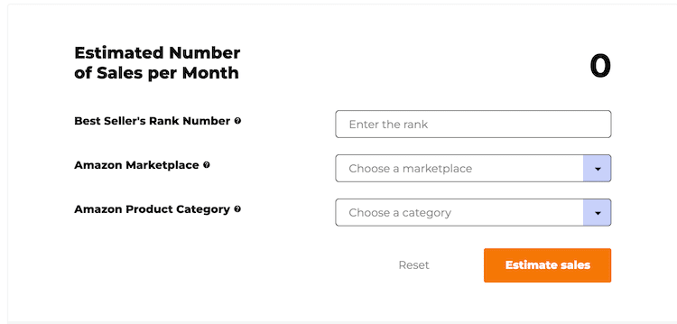 This free Sales Estimator tool offered by Jungle Scout shows your average monthly sales numbers for particular product categories on Amazon. Simply enter the Best Sellers Rank, Amazon marketplace, and product category to view estimated sales numbers.