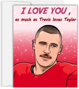 This card – one of the top-selling Taylor Swift-Travis Kelce products on Amazon right now – checks all the boxes: Swiftie support, football fandom, and Valentine’s Day. In the last week, sales are up almost 70%.