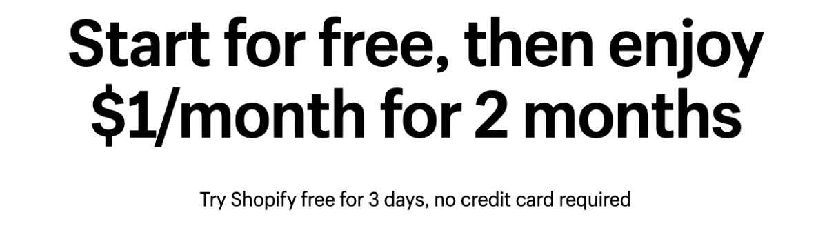 Shopify offers a 3-day free trial with a $1/month for 3 months promotion on any selling plan you choose from (as of Nov 8, 2023.