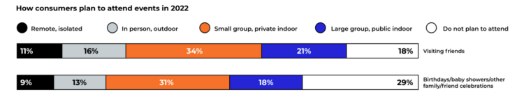 For many consumers, this year marks the first since the onset of the pandemic where they are comfortable visiting relatives, with 74% planning to see family in person again and 71% planning to attend celebrations with loved ones. Extended time apart may also be a factor in consumers’ willingness to spend on gifts that celebrate family.