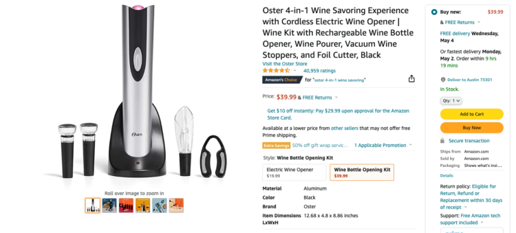 Building a product bundle around a shared experience can up the gift appeal, especially when people are still basking in a newfound appreciation for time spent together. Unit sales for this Oster 4-in-1 wine savoring experience are up almost 3,000% compared to this time last year.