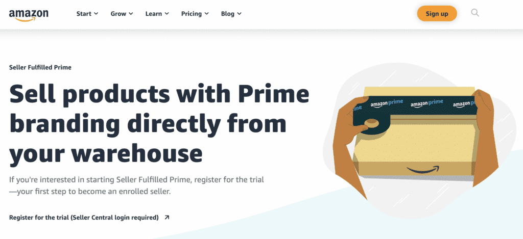 To enroll, visit the Seller-Fulfilled Prime landing page and click “Register for the trial.”