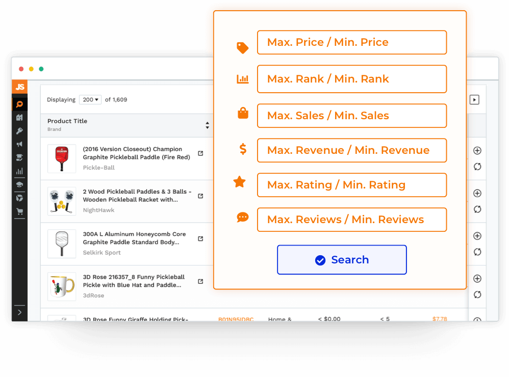 Generate ideas in seconds and start discovering products that match your specific search criteria. Sort by categories, estimated sales, sales rank, revenue, and more to quickly reveal profitable opportunities.