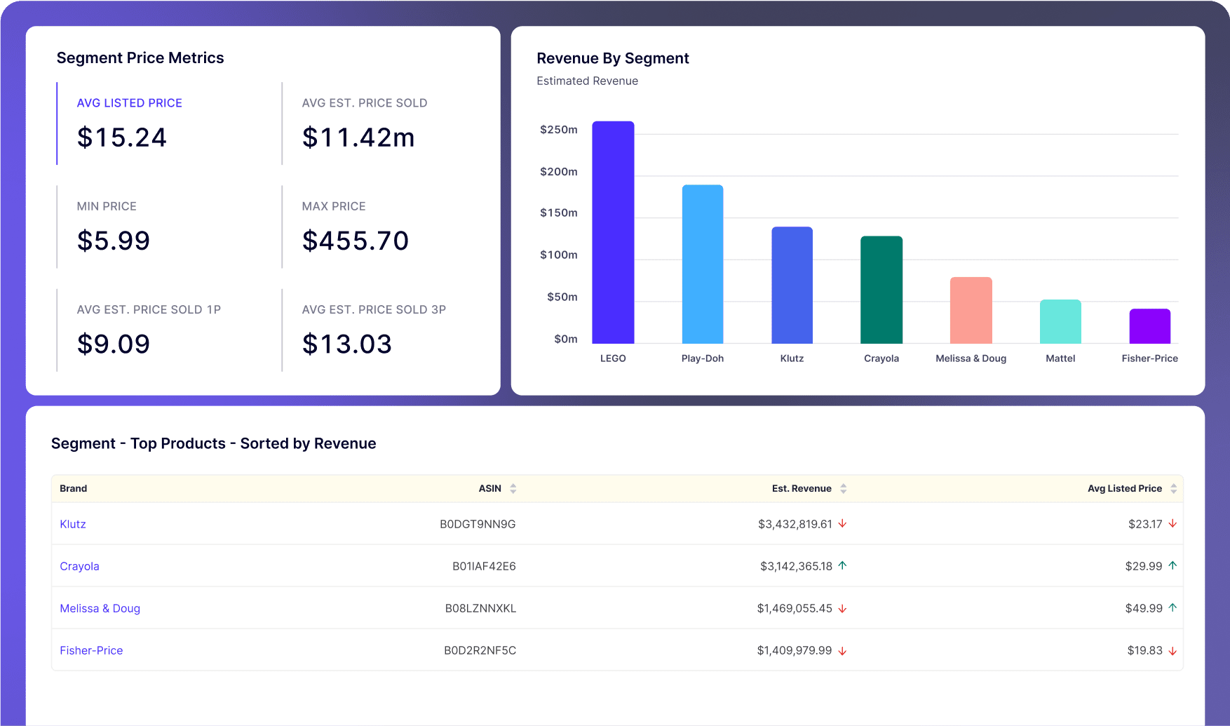 Put Amazon data into market context to understand category trends, competitor performance, and market share. Track competitors and consumer behavior in real-time to refine strategies, maximize sales, and stay ahead of market shifts.