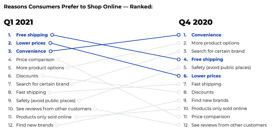 Here are the reasons consumers opt to shop online, ranked by popularity.