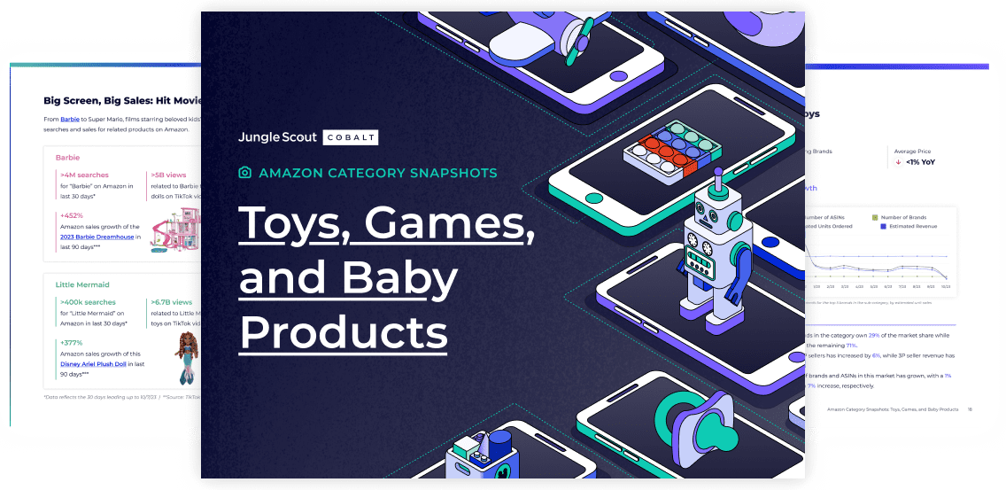 Keyword and product trends, leading brands, revenue and sales data, and more for Amazon’s Toys & Games and Baby categories.